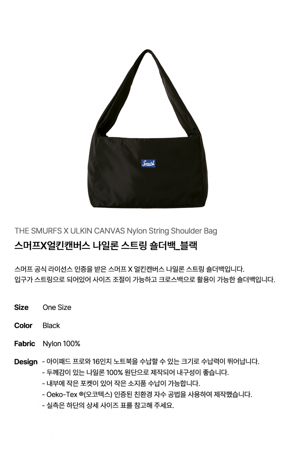 Smurf X Urkin Canvas Nylon String Shoulder Bag_Black