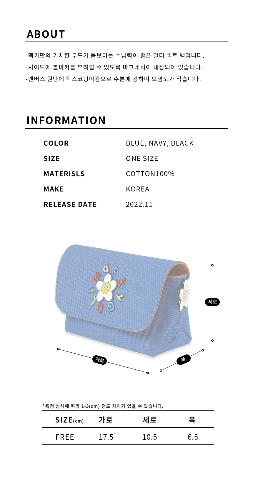 CompositionRefer to the Detailed imagesColorBlueCountry of originSouth KoreaProduct NoMCFW22HB_01...